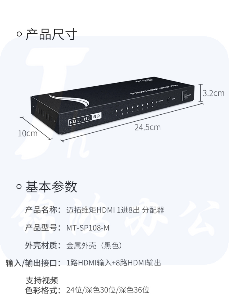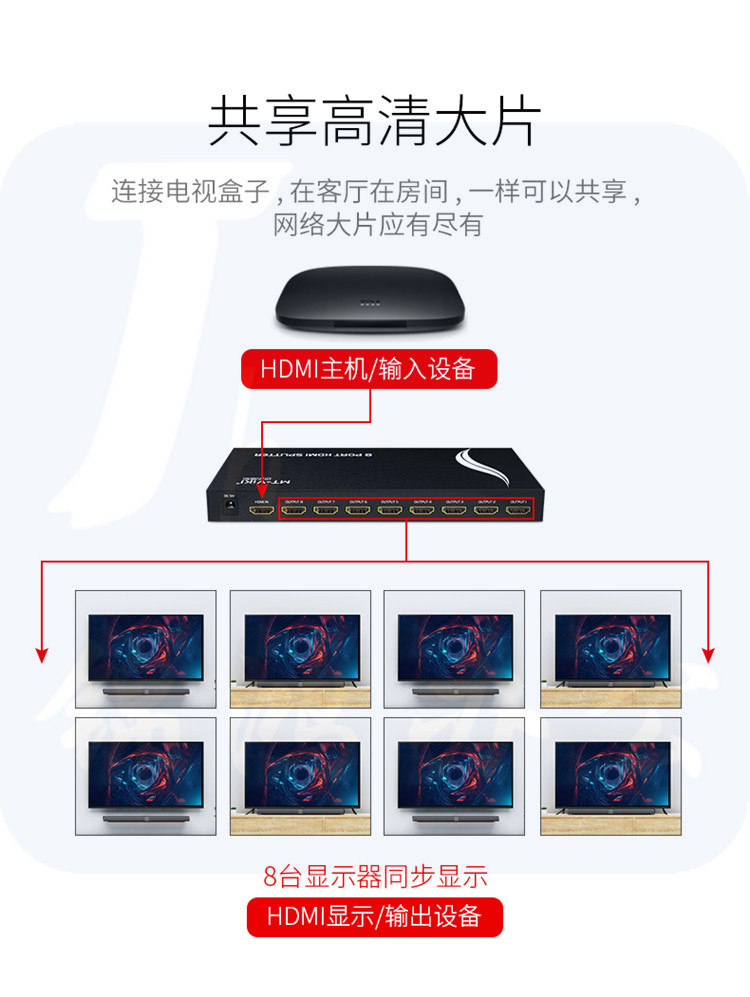 迈拓维矩(MT-viki)HDMI分配器 4K高清画质 屏器多屏显示视频教学拼接屏 1进8出 MT-SP108M