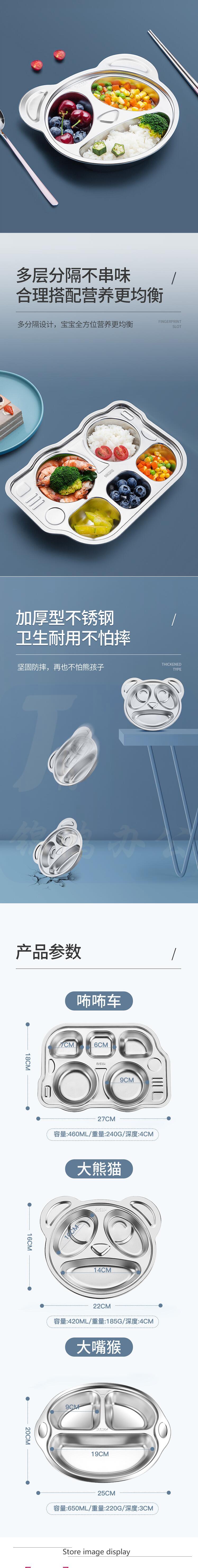 美厨 304不锈钢餐盘饭盒碗 加厚分格餐盘 大嘴猴系列 MCFT707