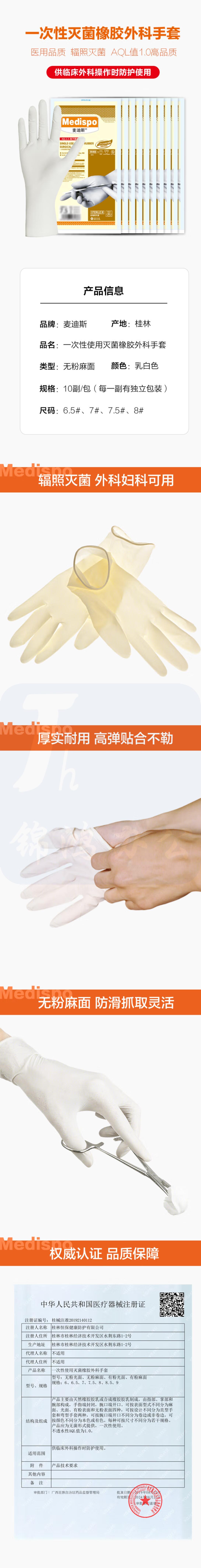 麦迪斯 10副独立包装乳胶手套 货号:JC