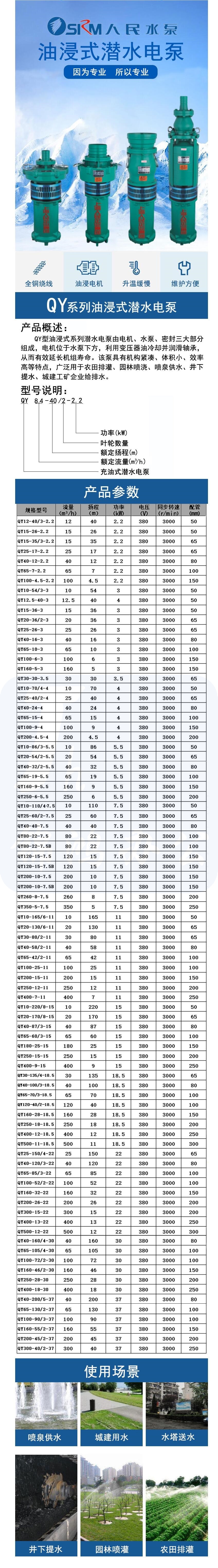 上海人民 水泵 油浸式潜水电泵 380V QY25-17-2.2