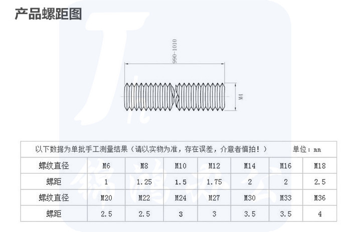 巨联(JULIAN) M6不锈钢1米长全螺纹丝杆
