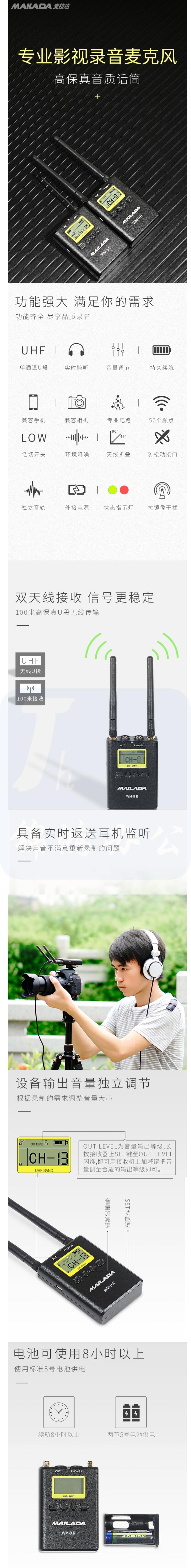 麦拉达(mailada)WM9S一拖二专业采访无线话筒小蜜蜂麦克风