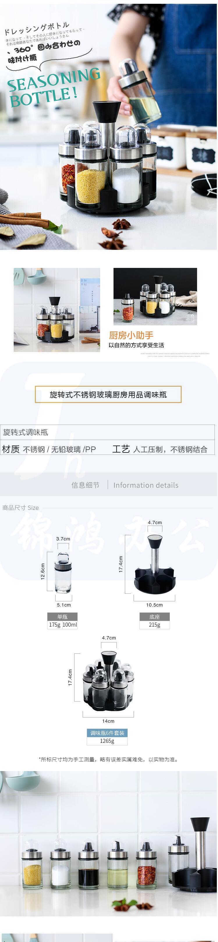 旋转式厨房玻璃调料盒 调味罐子调料瓶 货号:JC