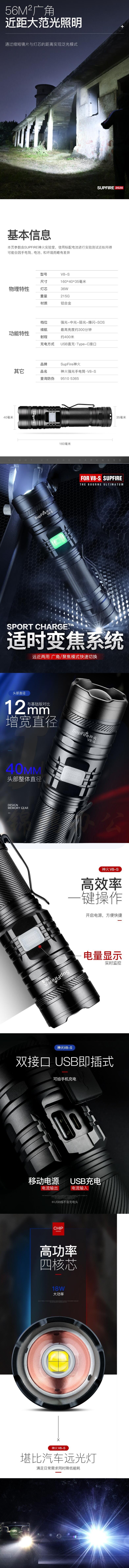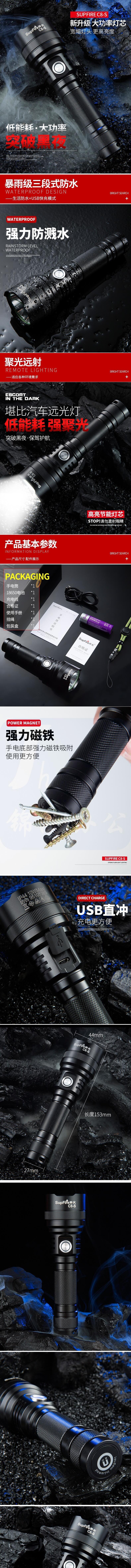 神火 C8-S 强光手电筒10瓦带磁铁led可充电防水应急