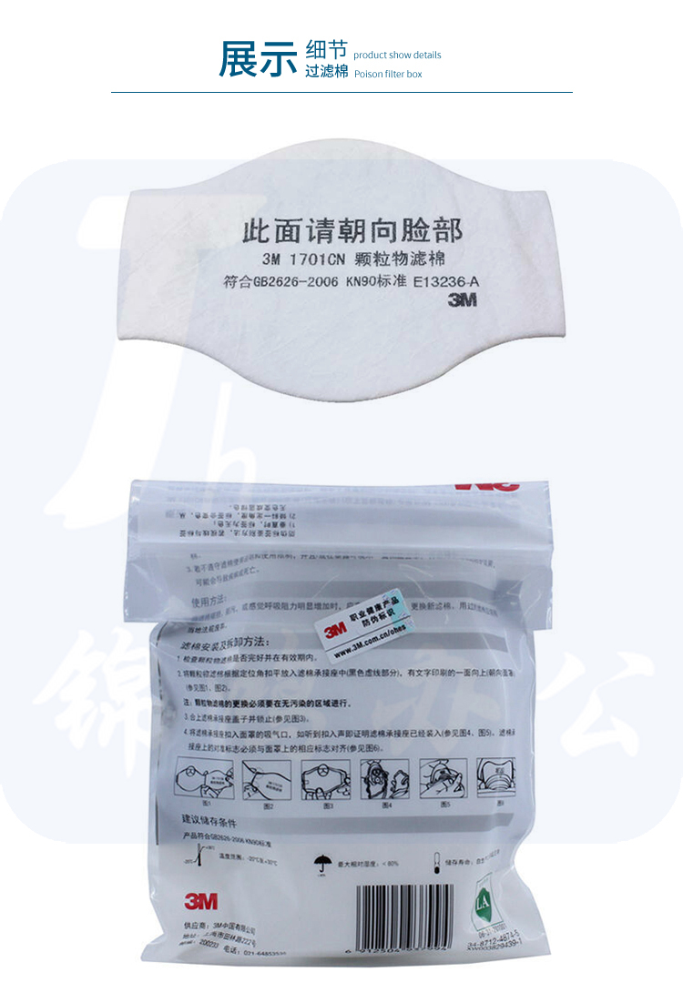 3M防尘颗粒物滤棉1701CN 10片一包