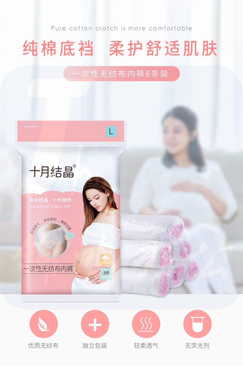 十月结晶一次性内裤产妇孕妇产后月子用品女士内裤底档纯棉 XXL8条/包