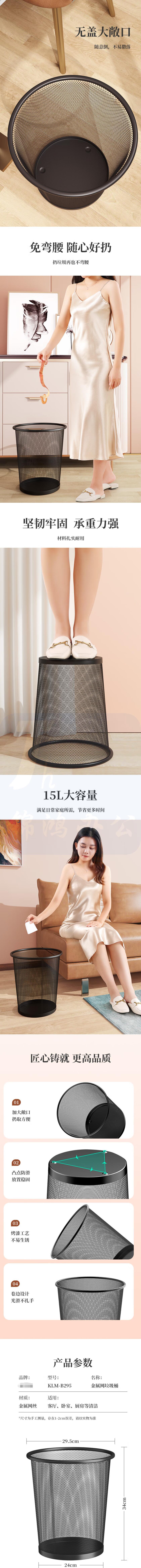 金属纸篓15L大号垃圾桶清洁纸篓 直径295mm B295