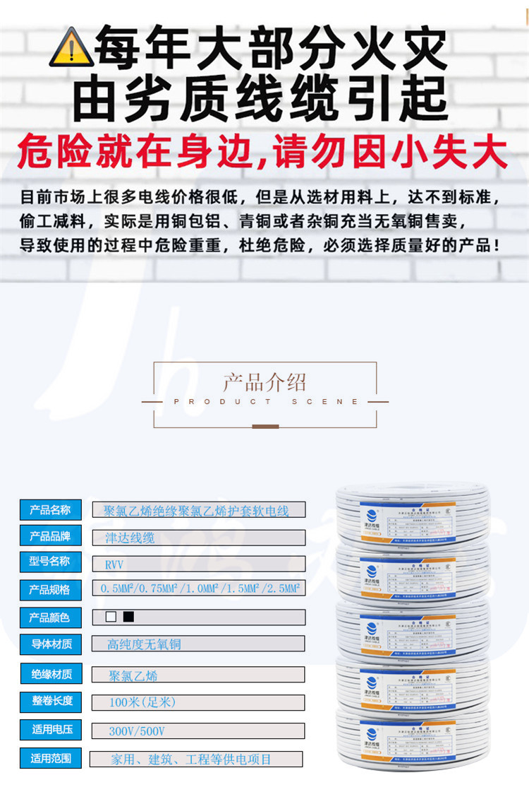 津达 RVV-4*1.5平方圆 100米/盘 电缆 护套线