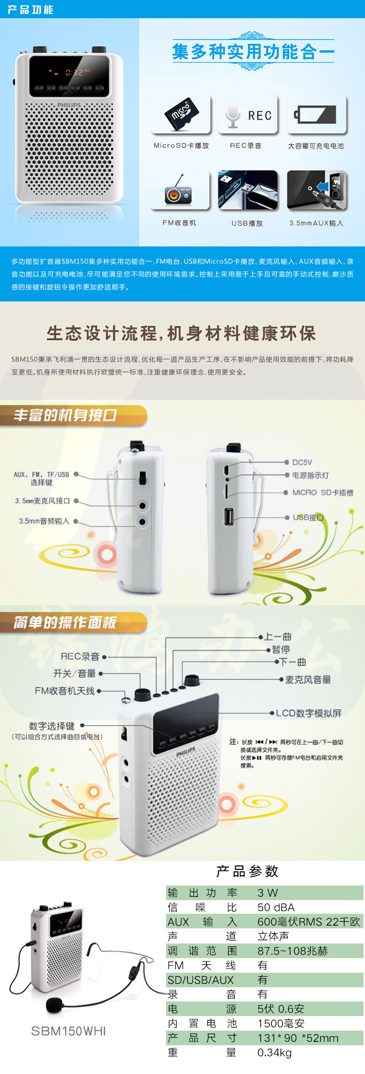 飞利浦(PHILIPS)SBM150白 广场级扩音器 大功率 便携音响