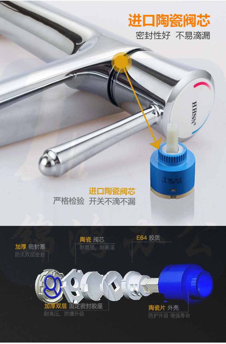 辉煌(HHSN) 卫浴水龙头冷热浴室全铜面盆龙头双孔三孔洗手卫生间洗脸台盆混水阀 精铜加厚 HH02001