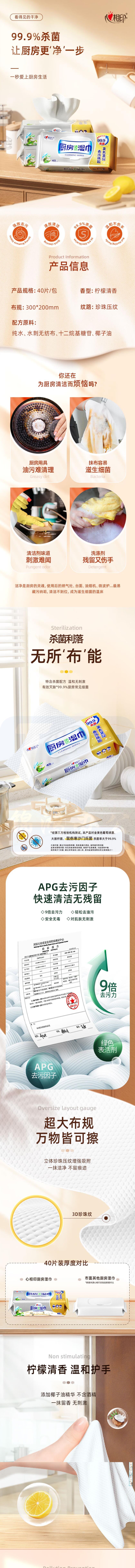 心相印厨房湿巾 40抽3包 金装去污去油厨房专用湿纸巾