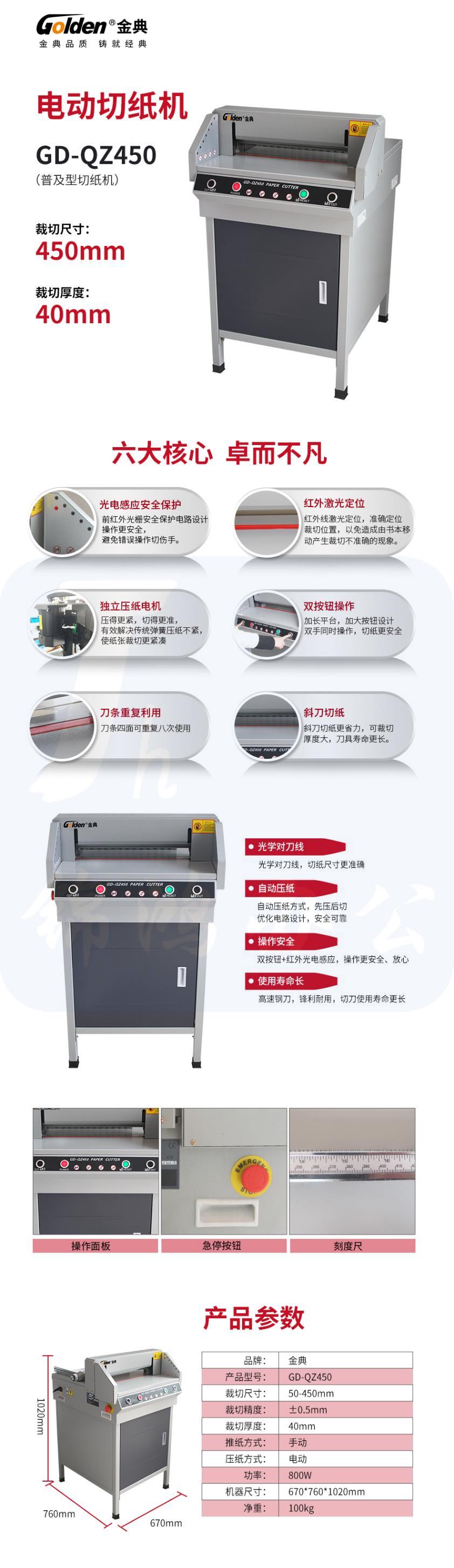 金典 GOLDEN GD-QZ450切纸机 电动切纸机 货号:WY