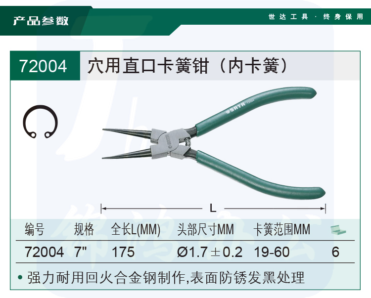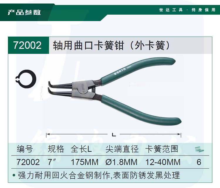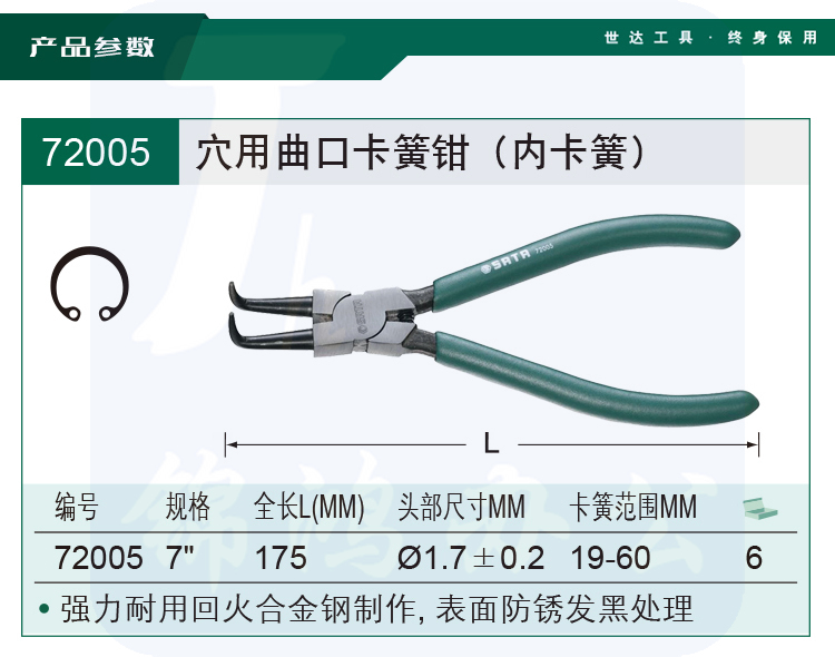世达 72005 曲口卡簧钳 穴用曲口卡簧钳7"弯嘴钳