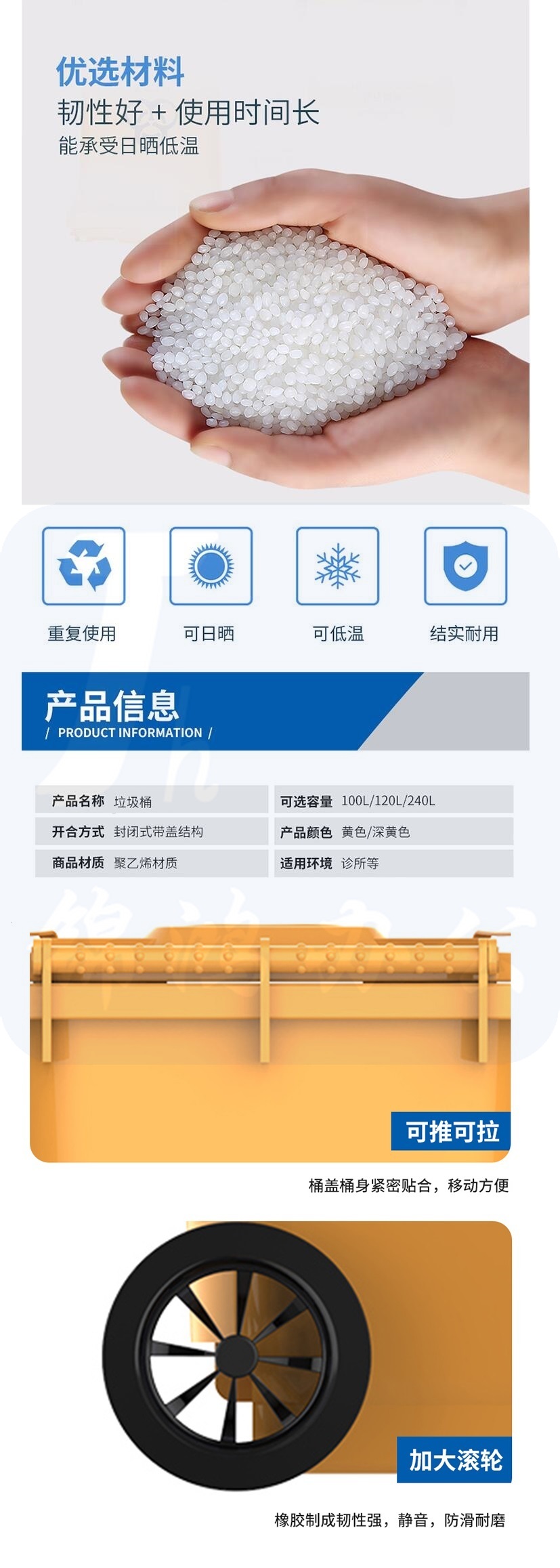 黄色垃圾桶 大号塑料环卫户外垃圾桶加厚带盖100L带轮翻盖垃圾桶