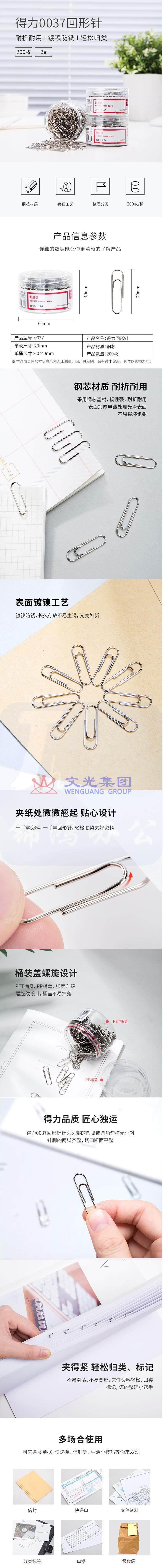 得力 29mm镀镍回形针 3#金属曲别针 200枚/筒 3筒装 0037