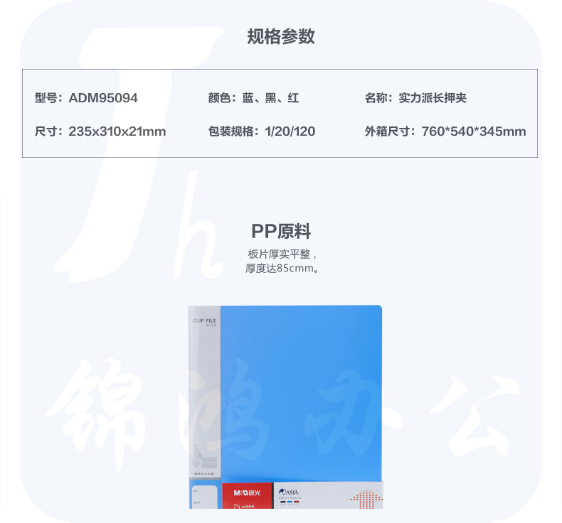 晨光(M&G)实力派A4文件夹 办公收纳用品 ADM95093长押夹+板夹20个/包