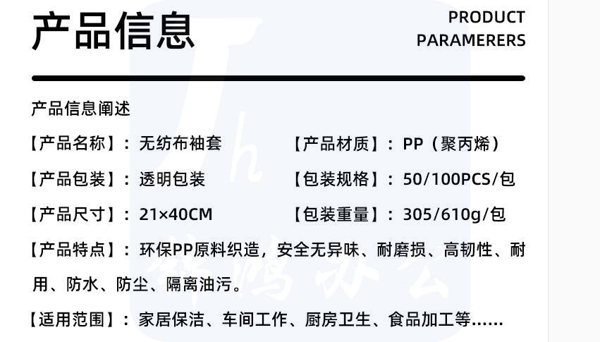 一次性无纺布护袖 防水防油耐脏套袖 100只/包 货号:HXE