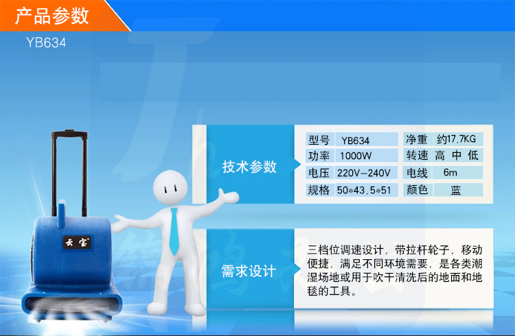 白云(BAIYUN)吹干机云宝YB634物业地板地毯清洁吹地机