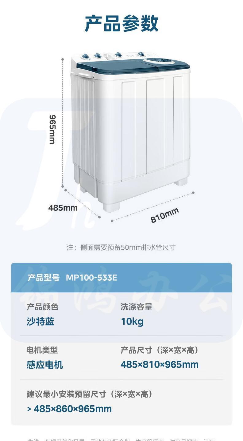 美的 10KG公斤半自动双桶双缸洗衣机 MP100-533E
