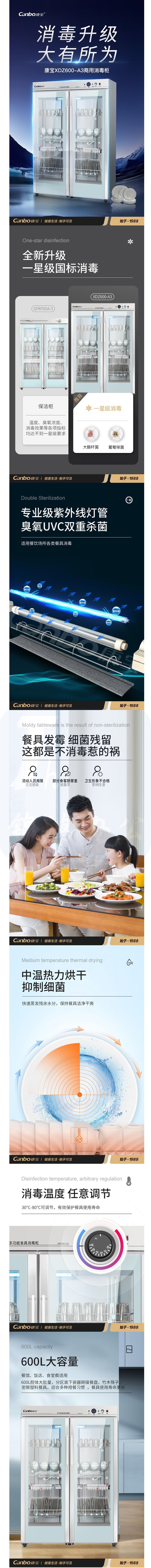 康宝(Canbo)消毒柜商用 臭氧紫外线消毒柜 立式大容量双开门消毒柜XDZ600-A3