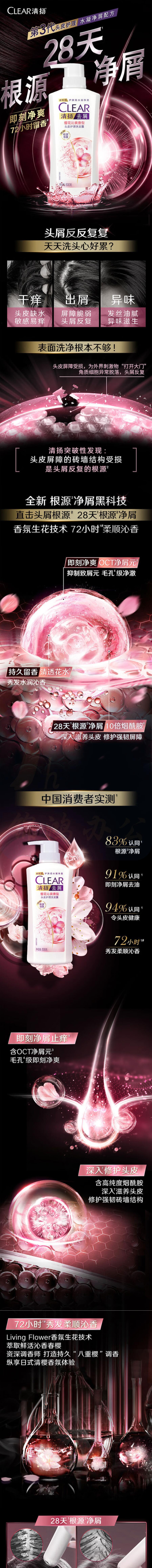 清扬 洗发水 500ML 樱花沁爽净屑蓬松