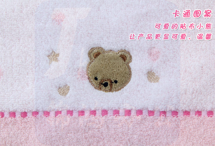 金号 ( KINGSHORE ) 毛巾家纺 纯棉 3666 小熊卡通无捻方巾兰粉 2条装