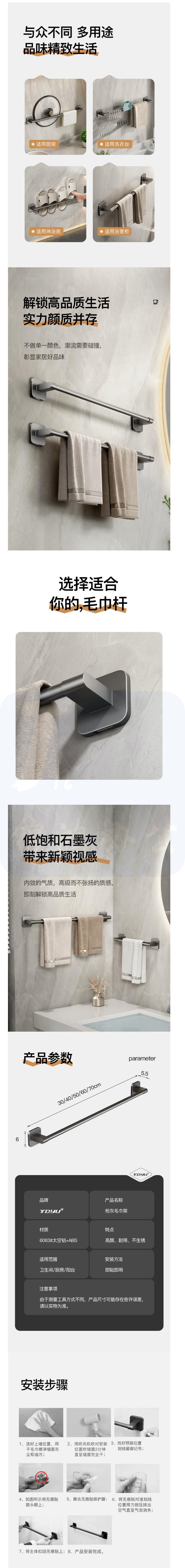 单杆毛巾杆 浴室毛巾杆 挂毛巾杆 50cm 石墨灰 货号:JC
