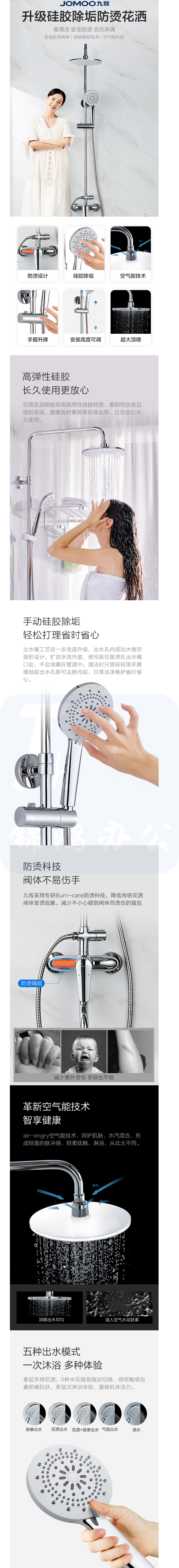 九牧 JOMOO 防烫空气能淋浴花洒套装 沐浴花洒除垢顶喷 手持莲蓬 JM-55986