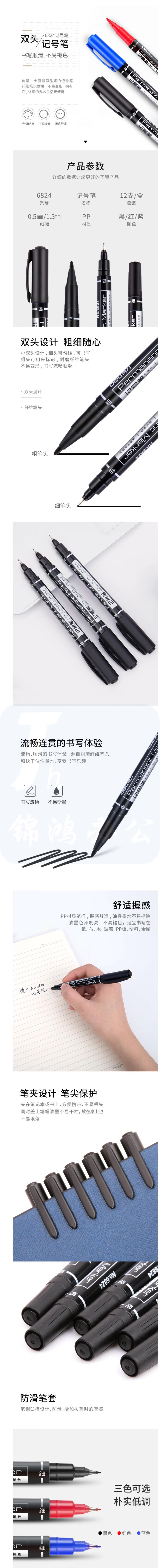 得力 小双头多用 记号笔 勾线笔 红色 6824