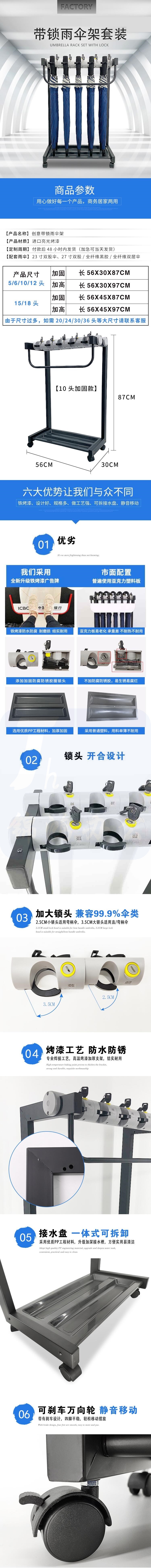 雨伞架 便民挂伞架 加固5头+5把23寸直柄伞