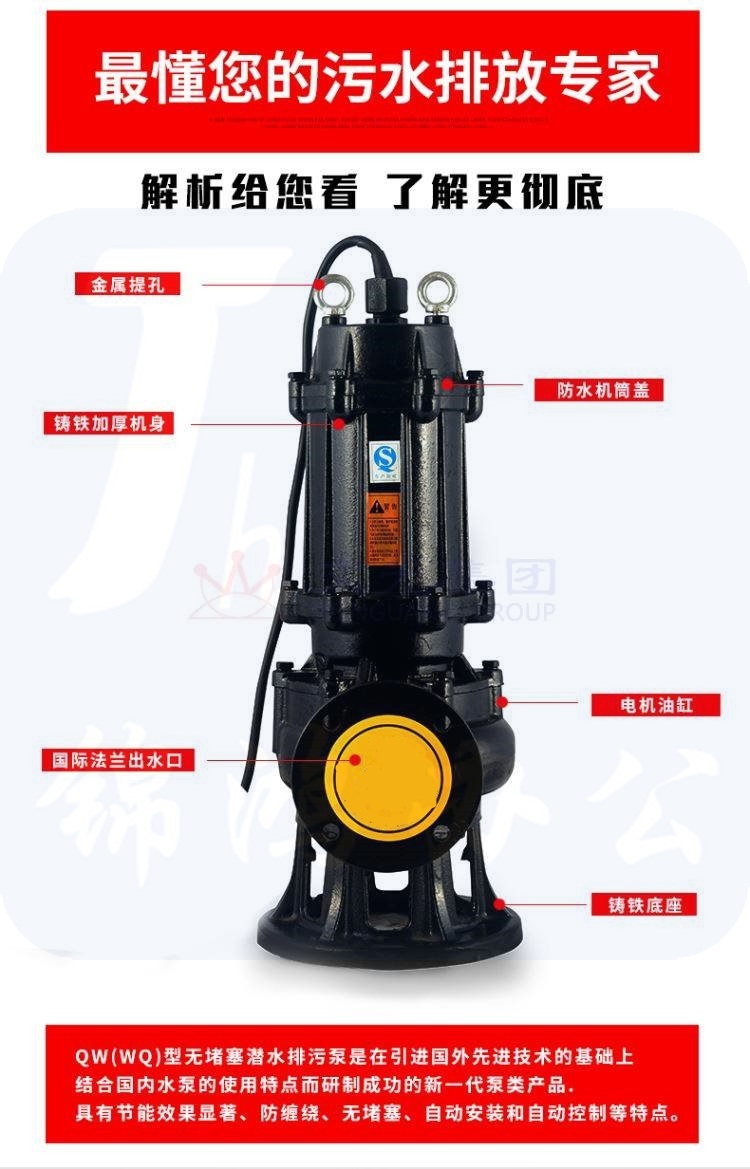 上海人民 WQ9-22-2.2KW 2寸 380V 无堵塞污水泵