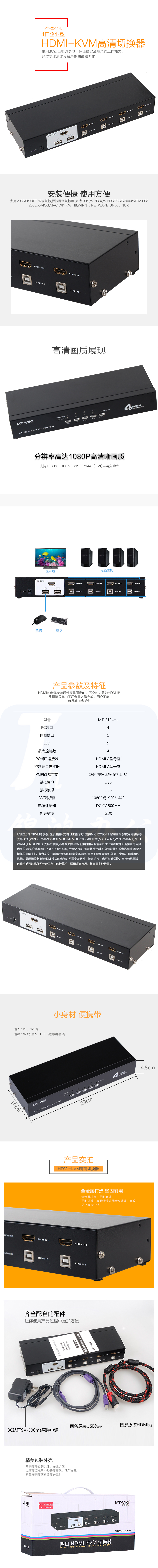 迈拓维矩 MT-2104HL HDMI口 KVM切换器 4路 自动 4进1出