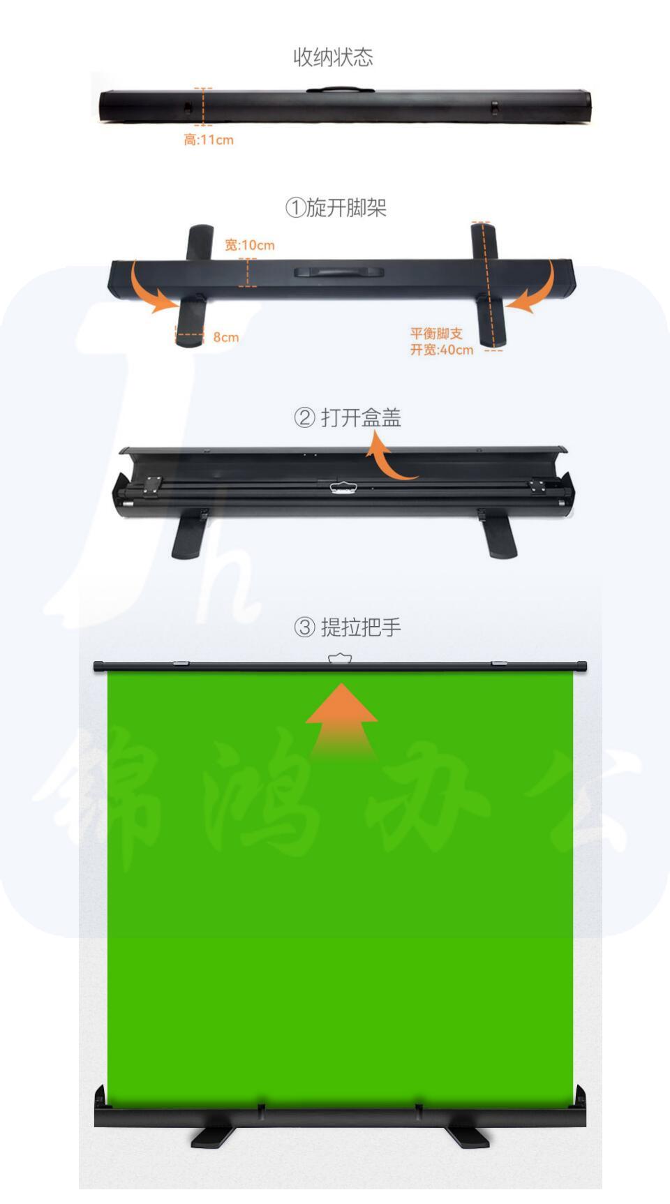 加厚绿幕地拉幕布便携式可升降背景布 牛津抠像布-绿幕 宽2.5m高2m(地拉款) 货号:JC
