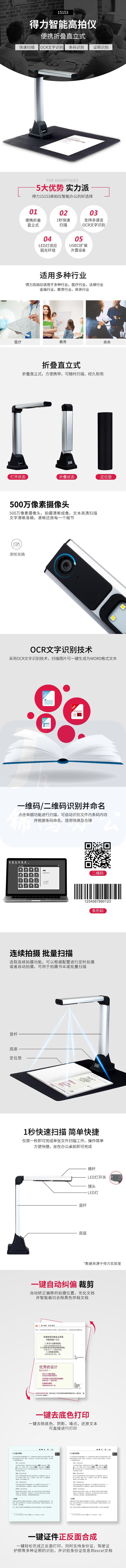 得力 15153高拍仪 500万像素高拍仪 A4幅面照片身份证高速