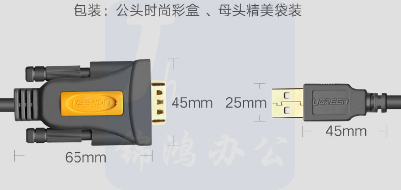 绿联(UGREEN)USB转RS232串口连接转换线 USB转DB9转接线 支持考勤机收银机标签打印机com口调试线 1米20210