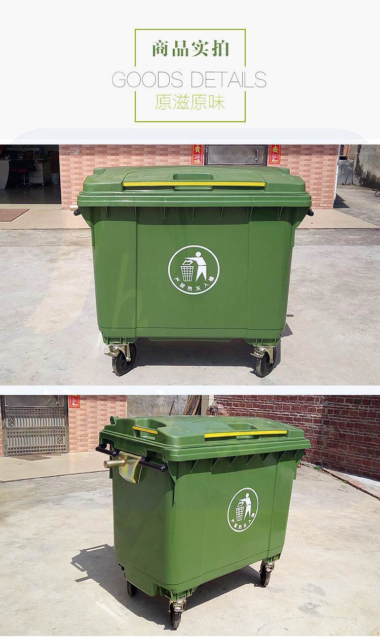 产品名称:明越塑料环卫垃圾桶绿660L(个)