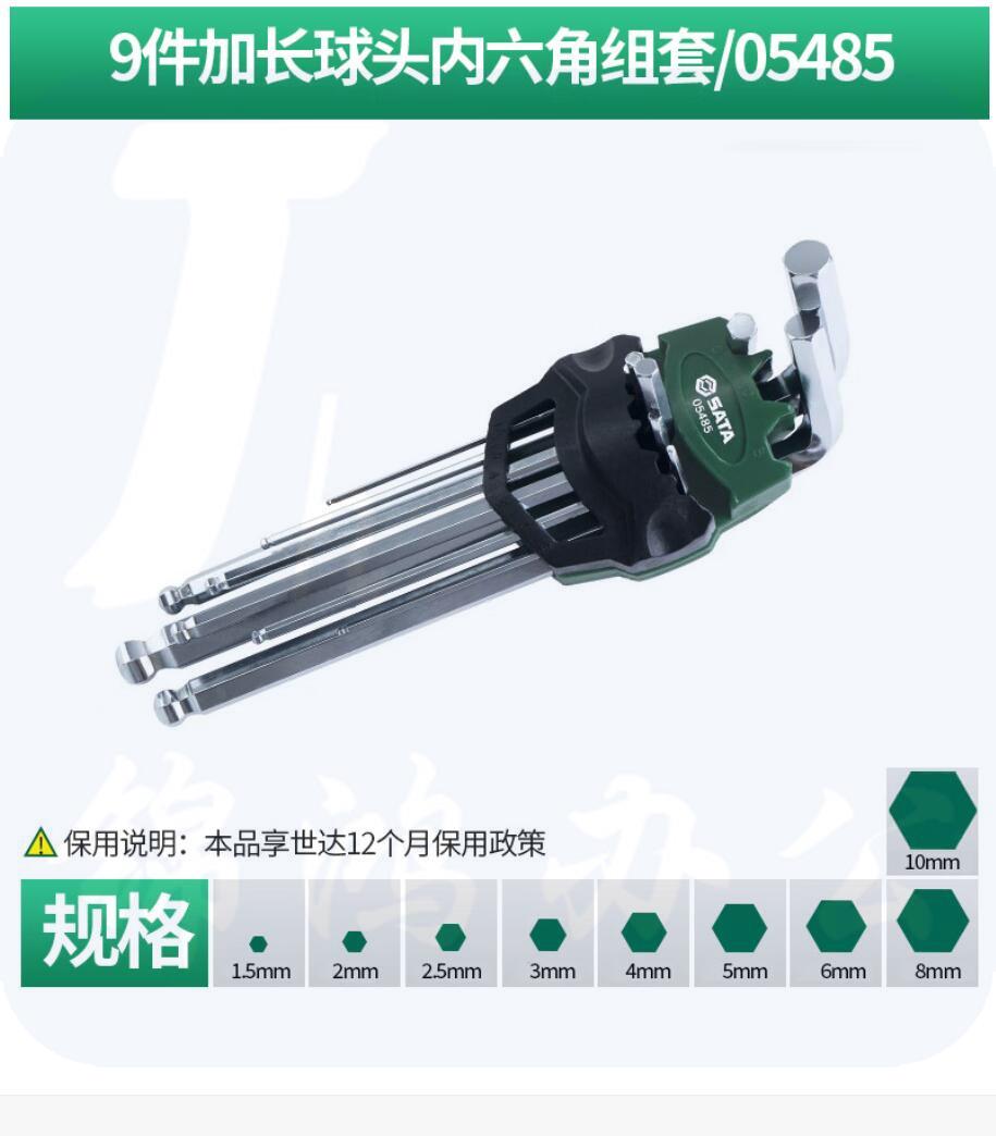 世达 05485内六角扳手便携式套装螺丝刀 9件加长球头内六角组套