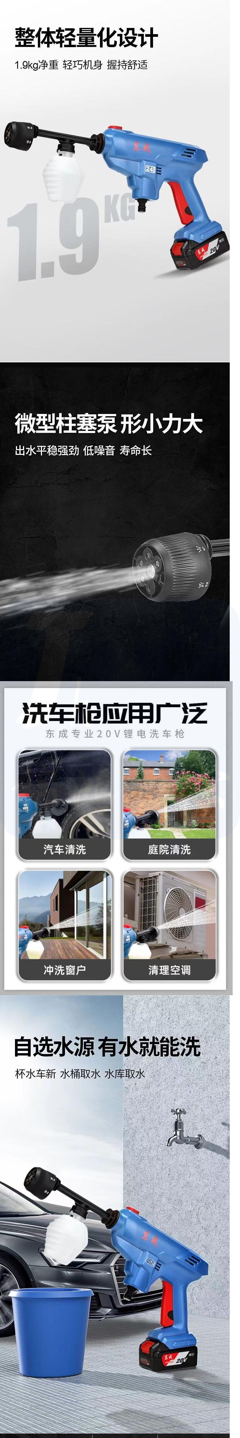 东成 充电无线高压洗车机便携清洗机 含2块电池 货号:LMN
