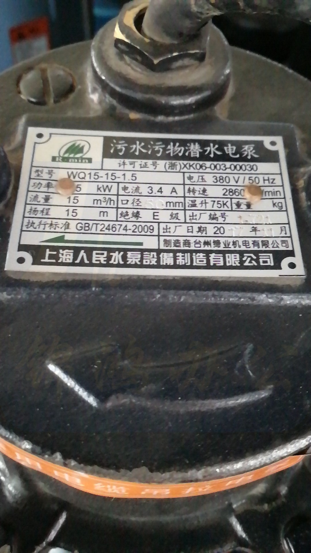 上海人民 污水污物 潜水泵 WQ15-15-1.5 2860/min 15m³/h 扬程15M
