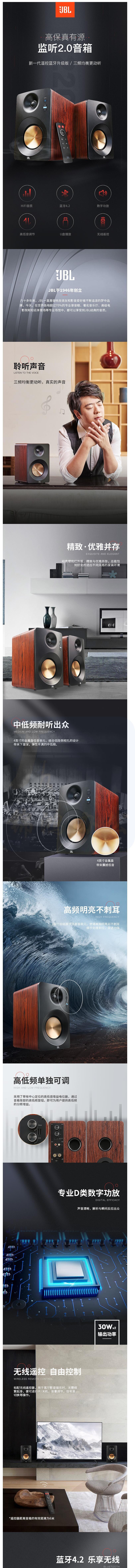 JBL CM220 高保真有源监听2.0音箱 HIFI音质 蓝牙音箱 低音炮