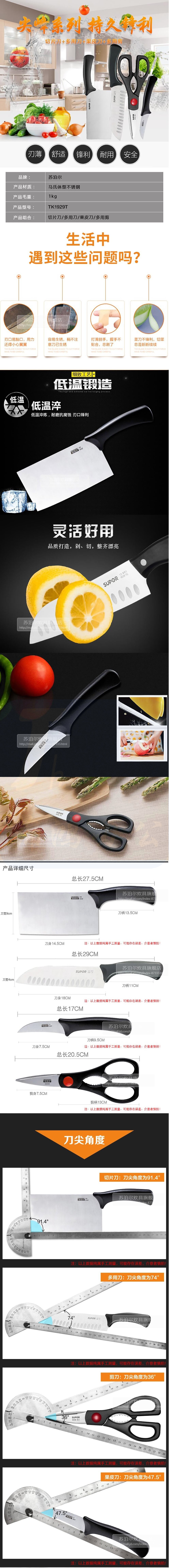 苏泊尔(SUPOR)TK1929T 不锈钢厨房刀具套装菜刀水果刀果蔬刀果皮刀厨房多用剪刀 货号:WY