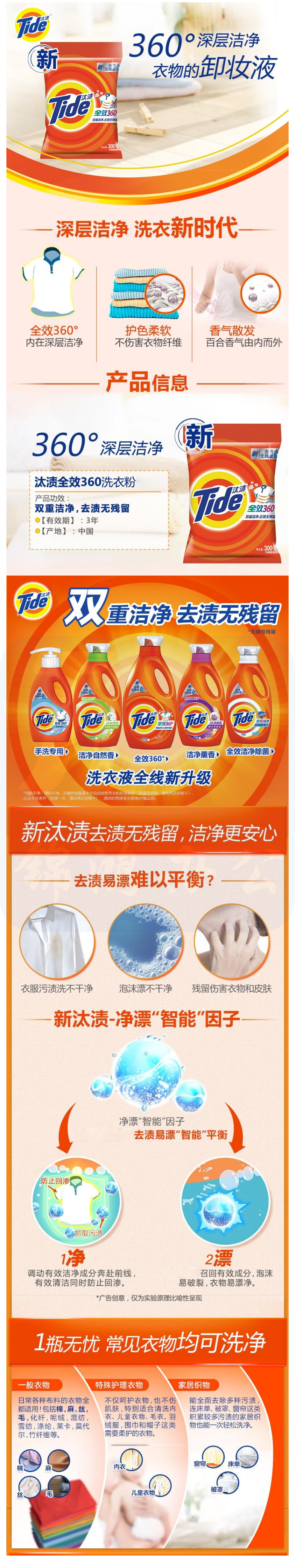 汰渍 全效360度洗衣粉 洁雅百合香无磷双重洁净去渍无残留 300g 货号:TXH