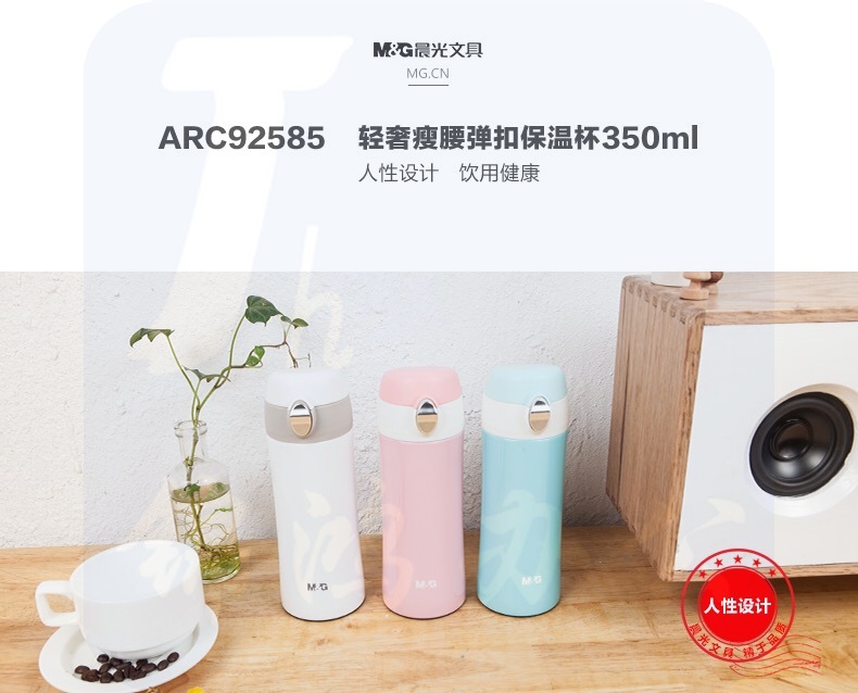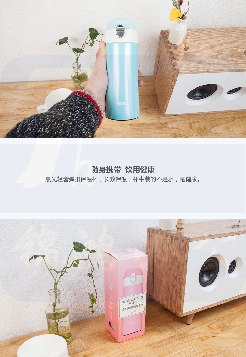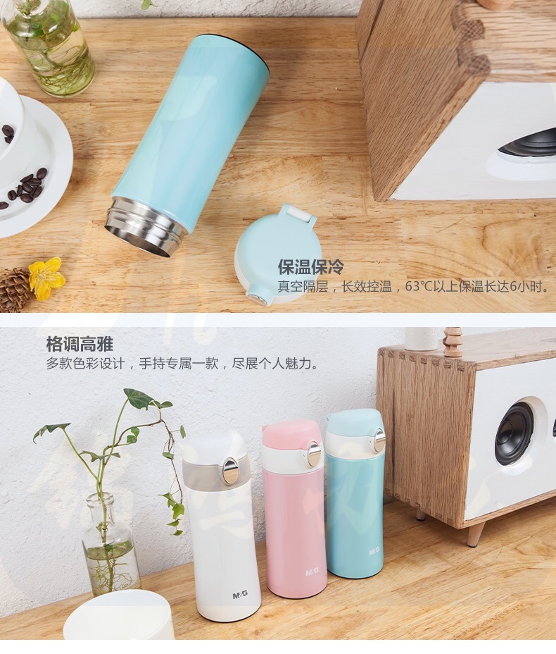 晨光(M&G)ARC92585轻奢瘦腰弹扣保温杯商务杯 350ml大容量白粉蓝颜色随机