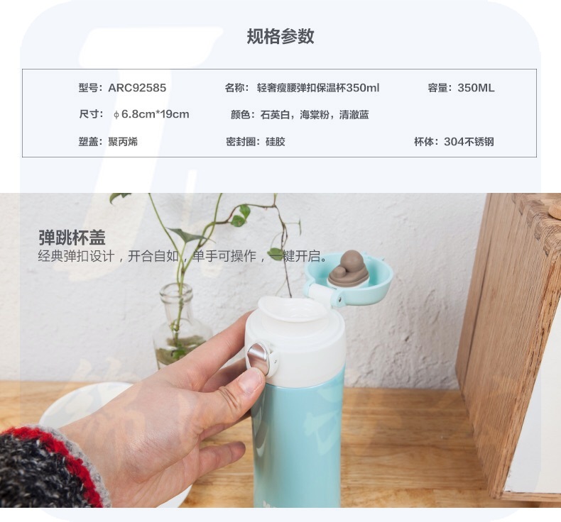 晨光(M&G)轻奢瘦腰弹扣保温杯350ml大容量商务杯ARC92585白粉蓝颜色随机