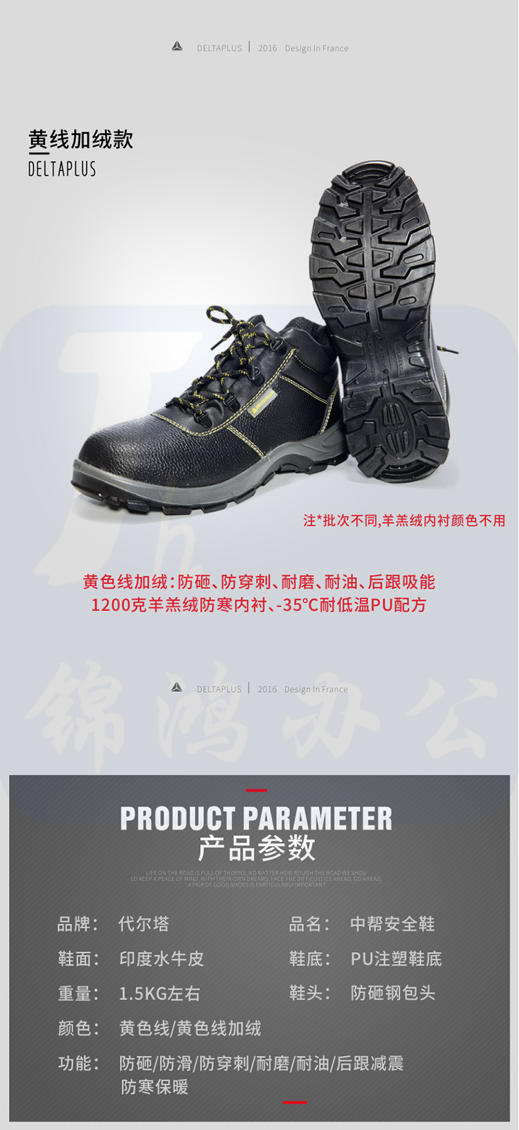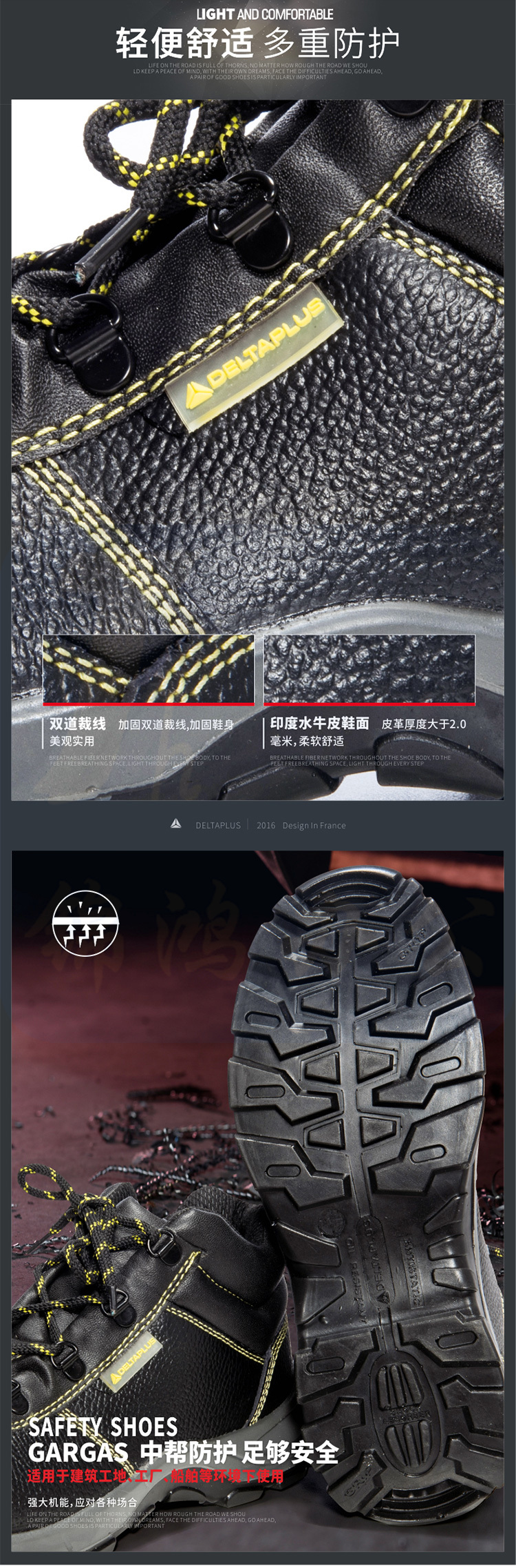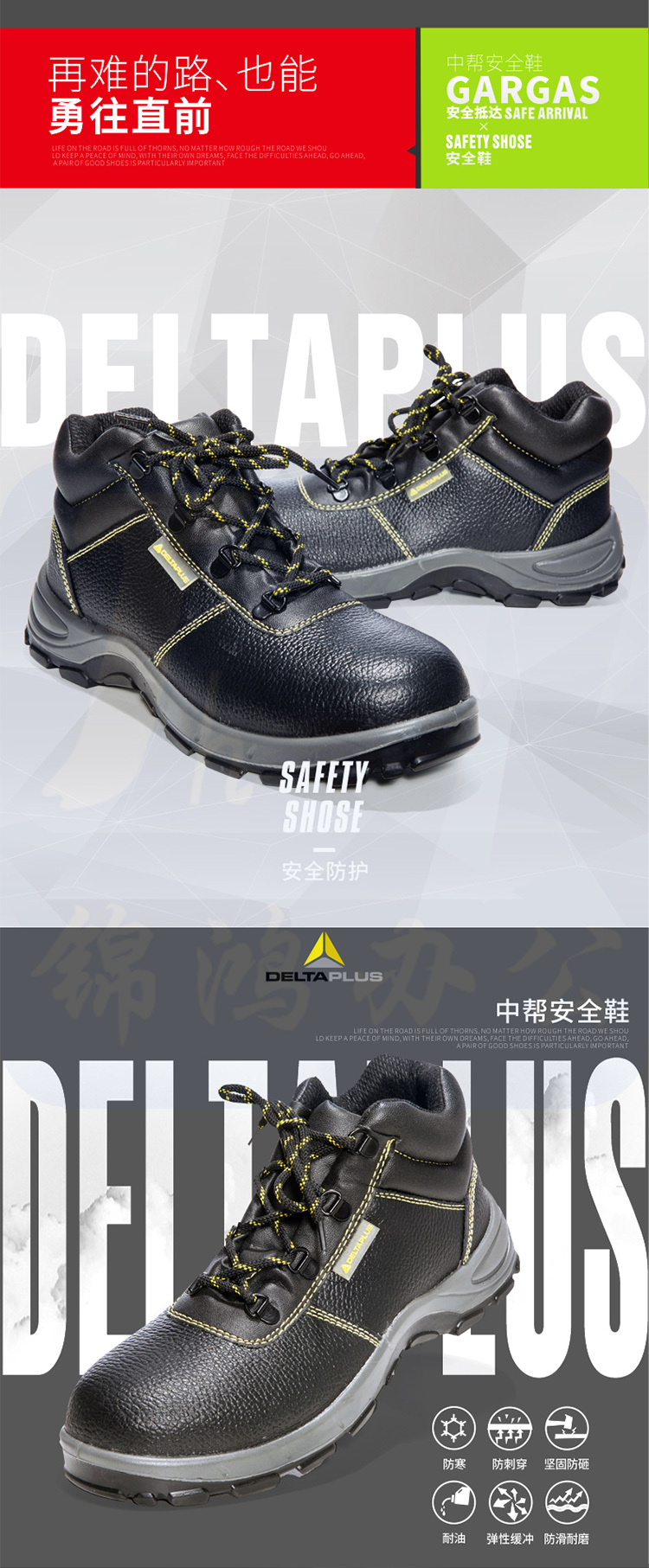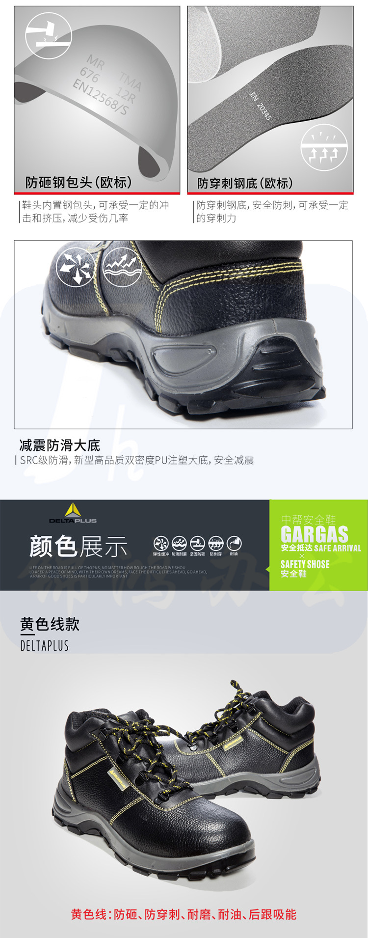 代尔塔 301101 中帮安全鞋防砸防穿刺 防静电防滑耐油
