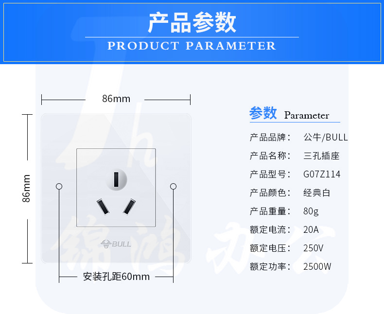 公牛 G06Z104 三孔插座 16A 大功率墙壁插座