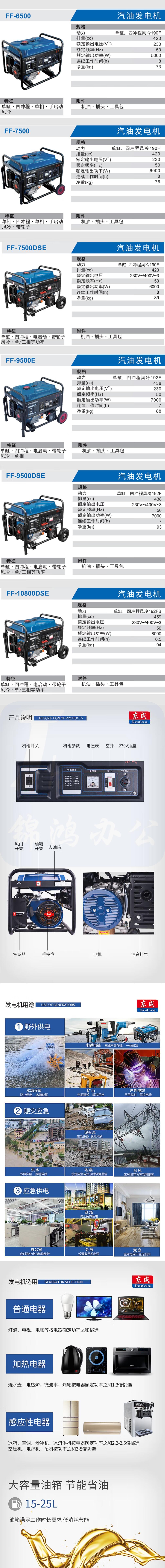 东成 FF-6500 汽油发电机5KW单相230V单缸单相手启动、