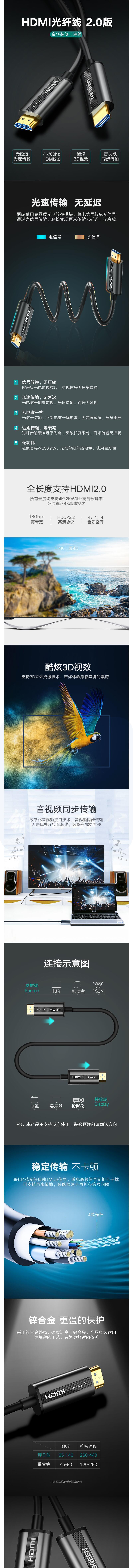 绿联 50217 光纤HDMI线2.0版 4K 60Hz高清线30米 3D视频线连接线