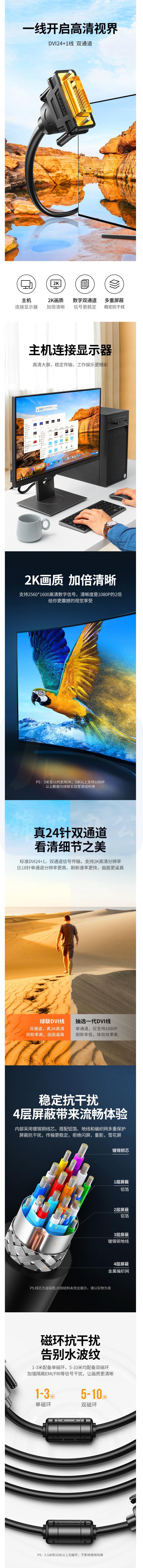 绿联(UGREEN)DV101 DVI连接线 DVI24+1转换线 DVI-D公对公双通道数字高清线 电脑显示器视频线 2米 11604