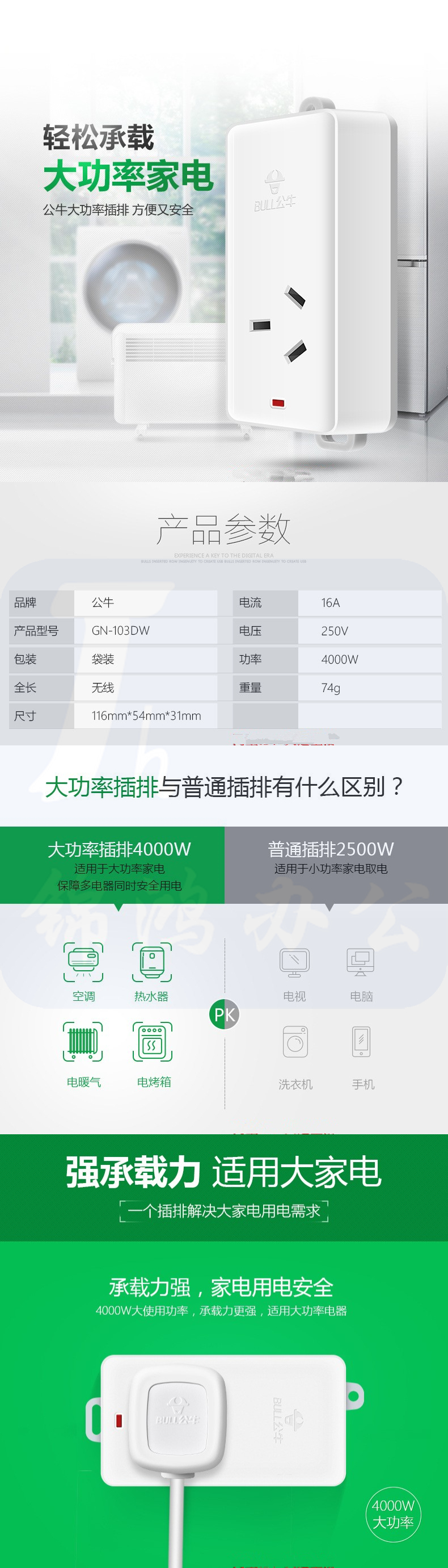 公牛 GN-103D-无线 空调插座10a转16a插座转换插头转换器插排延长线插线板大功率插排插线板 一位无控